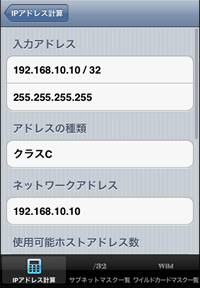 ![]() ネットワークエンジニア・サーバエンジニアの方、必携のアプリ IPアドレスとサブネットマスク長からネットワークアドレスや使用可能ホスト数などを計算します。 ルータやサーバなどのアクセス制限設定やDHCPサーバの割当範囲設定などにご利用ください。 |