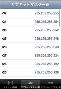忘れがちなサブネットマスクとビット列の一覧で毎回計算する必要もありません。 |